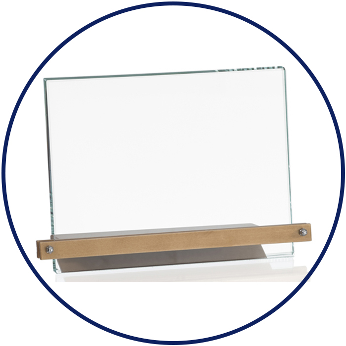 Vasto assortimento di astucci in velluto e legno, crest, porta targhe in cristallo trasparente o colorato con gift box incluso; personalizzabili con tecnica a laser, trasferimento a caldo, sublimazione e/o stampa digitale.